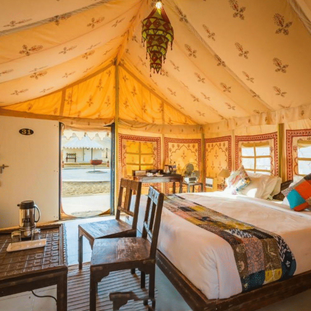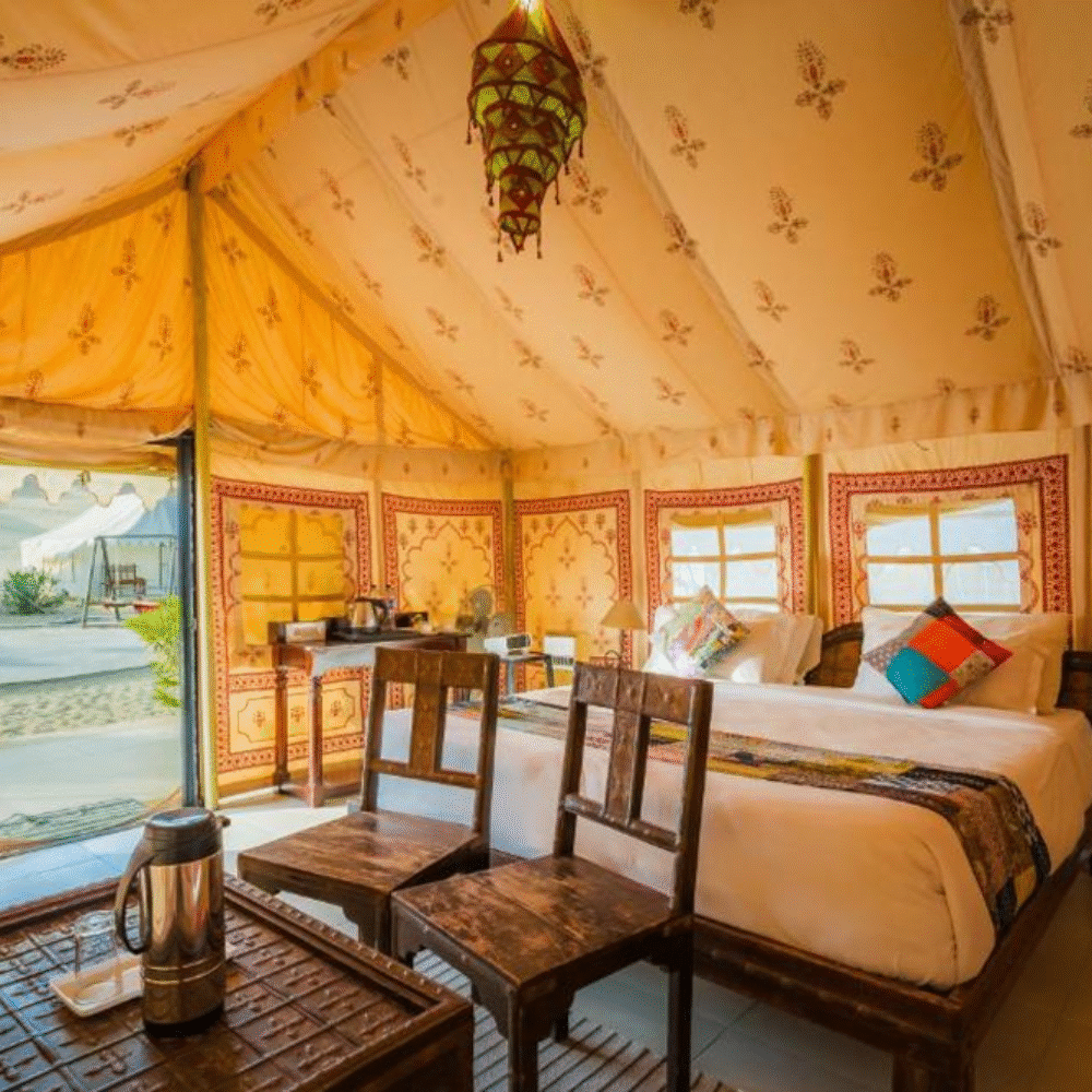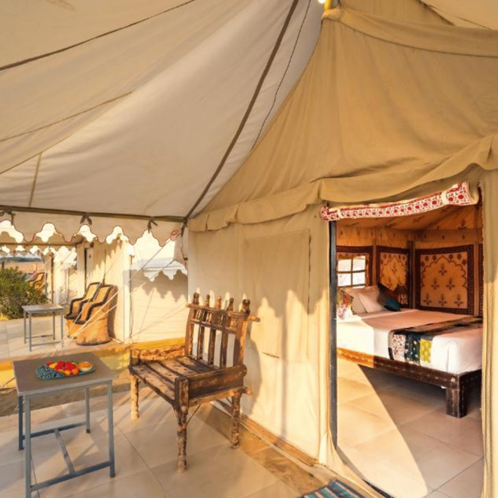 Our newly built luxury tents blend rustic charm with modern comfort, featuring spacious interiors and a private washroom with all essential amenities